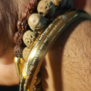 - Gloss bracelet for men in a curved Kada style featuring the 9 Verse of Hanuman Chalisa design.